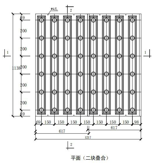 A型模板:單格濾池長度應為1.2m的倍數(shù),寬度為0.6m的倍數(shù),模板具體尺寸如圖: