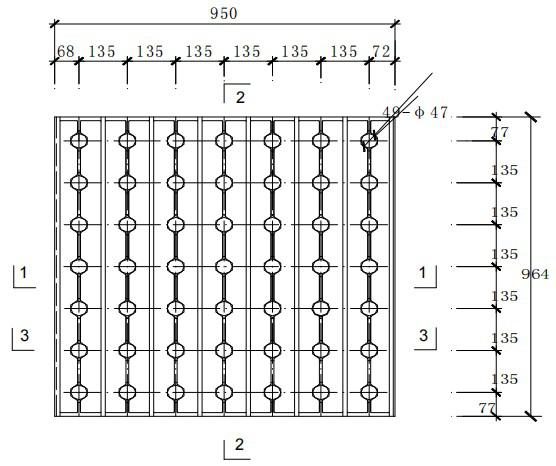B型模板:單格濾池長度應為1.0m的倍數(shù),寬度為0.45m的倍數(shù),模板具體尺寸如圖: