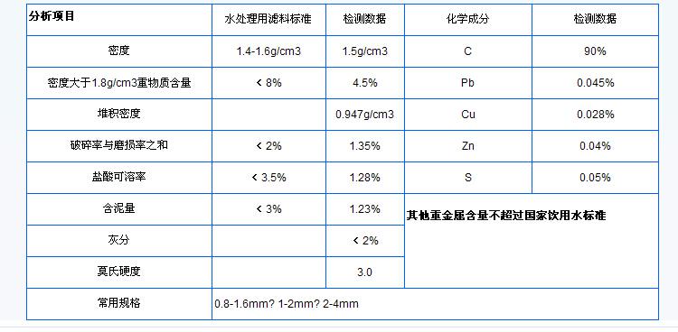 無(wú)煙煤濾料技術(shù)參數(shù)表;